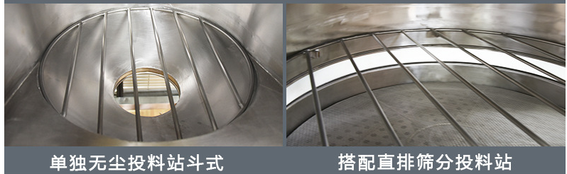 設(shè)置格柵,有效防止PE袋與粉末接觸,并配有振動篩(一般是直排篩旋振篩),可有效攔截異物,確保出料合格。