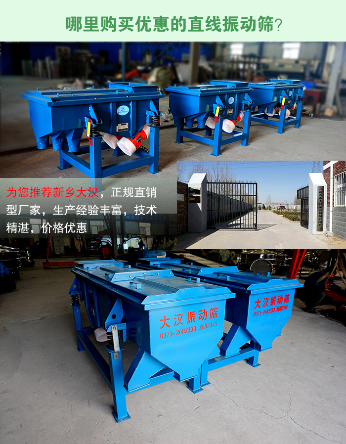 現提前預約,即可享受新折扣價,您也可來廠對直線振動篩進行免費的參觀與試機,了解實際生產現場的運行情況,大漢公司隨時期待著您的到來。