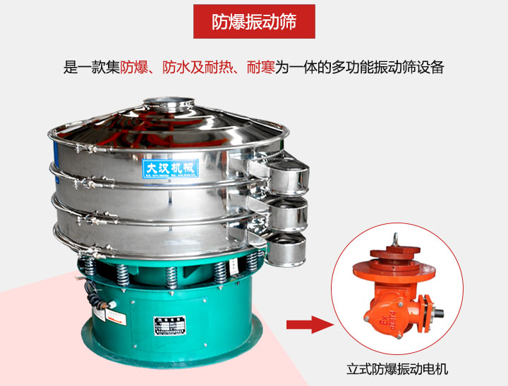 防爆振動(dòng)篩是針對(duì)一些易產(chǎn)生爆炸行業(yè)的研發(fā)設(shè)計(jì)而成多功能振動(dòng)篩設(shè)備